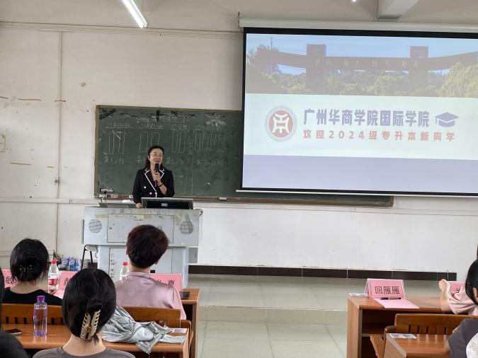 On September 11 and September 24, 2024, the International School of Guangzhou Huashang College conducted two freshman orientation sessions—one for 2024 undergraduate students and another for 2022 junior-to-senior transfer students—at the Library Auditorium and Lizhi Building B503, respectively. Led by Dean Hui Yanyan, the sessions were moderated by Freshman Counselor Hao Zixiu and Student Affairs Director Guan Huihui.