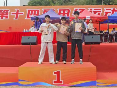 In the intense track and field competitions, Lin Yuequn from Class of 2024, International Economics and Trade program, stood out brilliantly in both men’s high jump and long jump events, earning second place in high jump and third place in long jump, showcasing excellent jumping ability and precise technique.