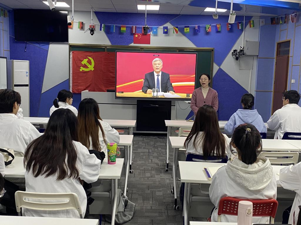 To thoroughly study and implement General Secretary Xi Jinping's series of new ideas, perspectives, and conclusions on comprehensively deepening reforms, the International School organized a training session for faculty and student Party members on the evening of December 18, 2024, in Room 401 of Qizhi Building. Comrade Hao Zixiu, a counselor at the International School, led 42 faculty and students in studying a special video titled "In-Depth Study and Implementation of General Secretary Xi Jinping's New Ideas, Perspectives, and Conclusions on Comprehensively Deepening Reforms and the Spirit of the Third Plenary Session of the 20th CPC Central Committee."
