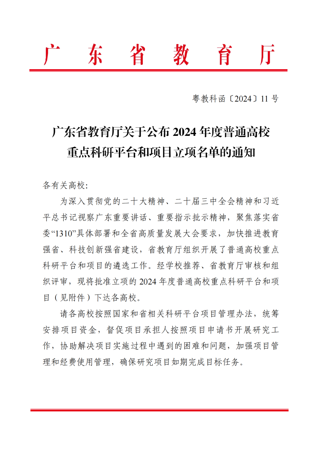 近日,广东省教育厅公布了2024年度普通高校重点科研平台和项目立项名单,3044永利集团登录“环南海国家华人文学与文化研究中心”(主持人:陈少华教授)获批广东省普通高校人文社科重点研究基地,标志着我校学科建设发展再上新台阶。