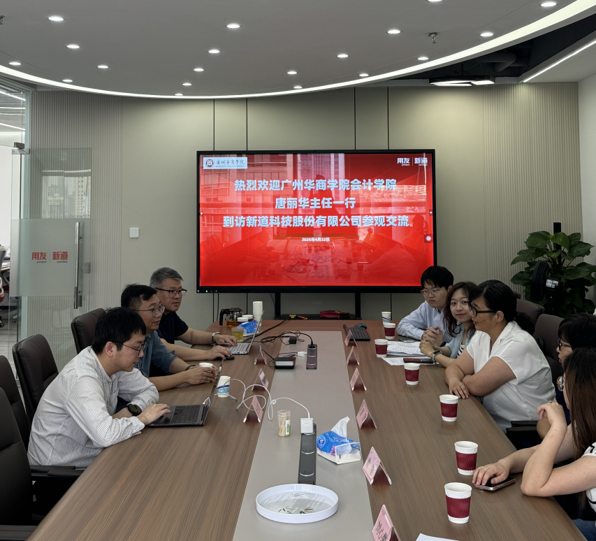 2025年4月22日,3044永利集团登录会计学院会计系主任唐丽华率师生代表,赴新道科技股份有限公司开展访企拓岗及校外实习基地调研。用友新道华南区总经理黄梓伟、教育规划总监魏闯携团队热情接待。双方围绕人才培养、实习就业合作、校外实习基地建设等关键议题展开深入交流,为深化校企合作、提升人才培养质量迈出重要一步。