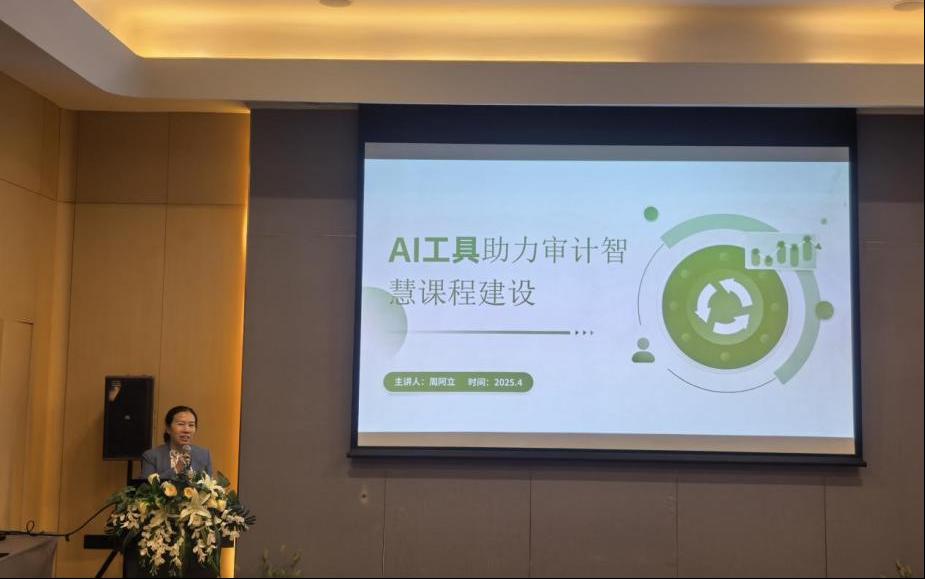中南财经政法大学会计学博士周阿立副教授以“AI工具助力审计智慧课程建设”为题作主题报告。周副教授聚焦于AI人工智能如何赋能智慧审计课程的内核构建与规划布局,深入剖析了AI工具在革新课堂教学设计及推动教学改革中的关键作用,系统阐述了AI技术与教育教学深度融合的创新理念和实践路径。报告中,周副教授引入大量丰富且贴合实际的案例,生动形象地展示了AI技术工具如何为传统课堂注入新的活力,为参会人员提供了极具价值的可借鉴教学范式,也为财经教育的数字化转型带来了深刻的前瞻性思考,有效推动了“教”与“学”的创新发展,全面提升了教学水平与课程建设质量。