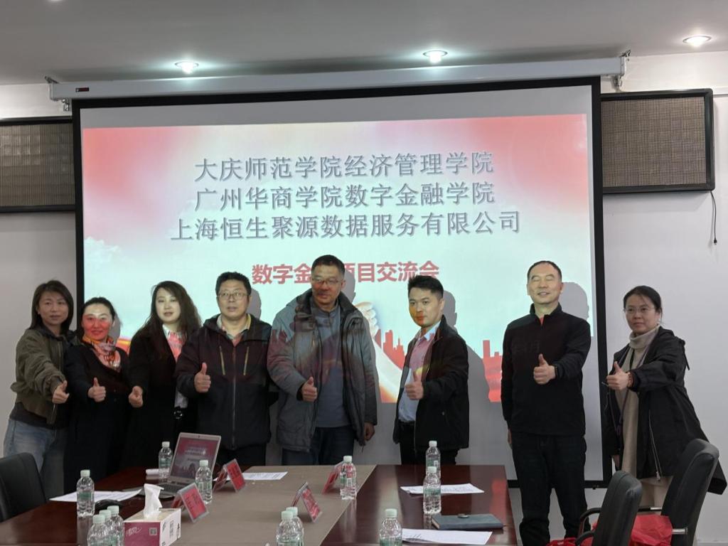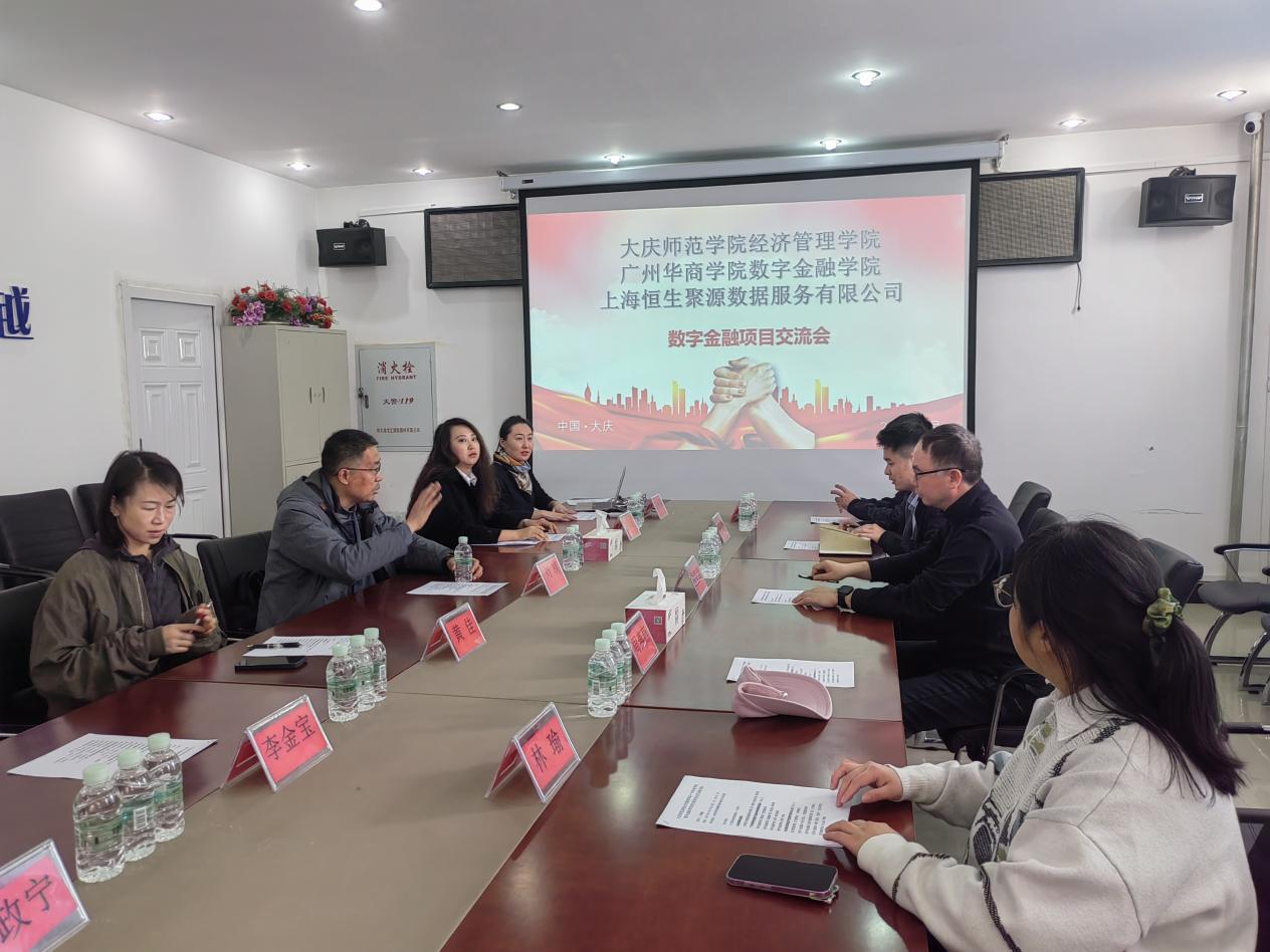 双方围绕我国数字金融龙头企业上海恒生聚源公司的数字金融项目合作展开交流。大庆师范学院经济管理学院院长兼党委书记刘楠教授、数字金融教研室主任王盼博士、经济与金融系教师黄佳老师、李金宝博士参加座谈交流。会议在第五教学楼402会议室进行,由经济与金融专业负责人王植荔副教授主持。