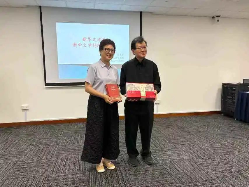 讲座结束后,华商文学院代表王树林、史挥戈分别向两位主讲专家赠送了从中国带来的纪念礼物,表达诚挚谢意。