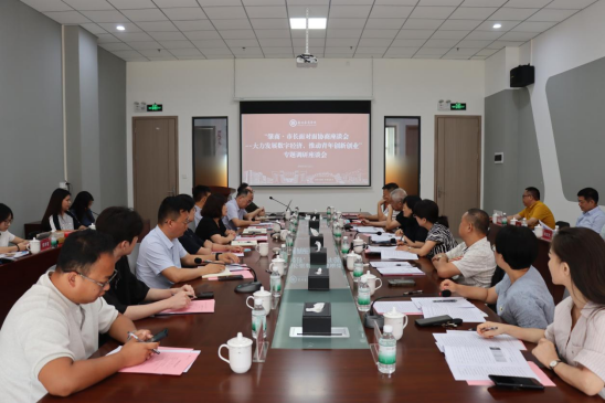 我校与会人员就数字经济专业建设、产教融合模式、创新创业教育及校地合作、青年在创业过程中存在的困难、希望政府如何支持解决等问题进行了深入交流与探讨。