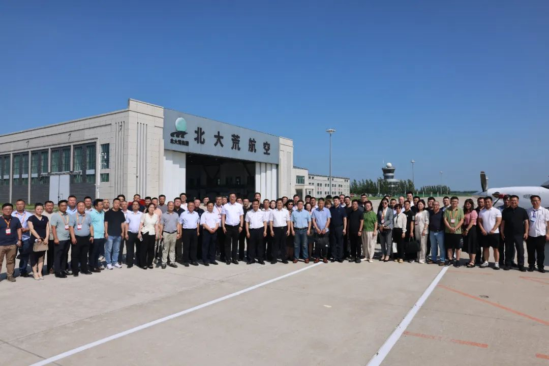 下午,参会人员赴北大荒通航肇东机场考察,参观了航空主题公园、运控中心、停机坪、文化长廊、党建活动馆、科普研学馆等,观看无人机表演,实地了解无人机在农业植保、应急救援中的应用实践。