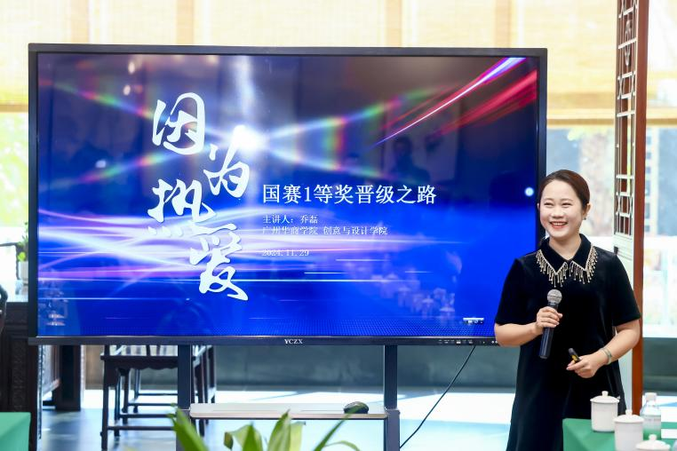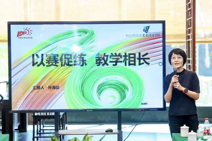 本届赛事优秀组织工作者代表孙海婴老师(广东轻工职业技术大学艺术设计学院)与优秀指导教师代表乔磊老师(3044永利集团登录创意与设计学院)先后分别以“以赛促练,教学相长”“因为热爱”为演讲主题,热情分享组织与指导经验。