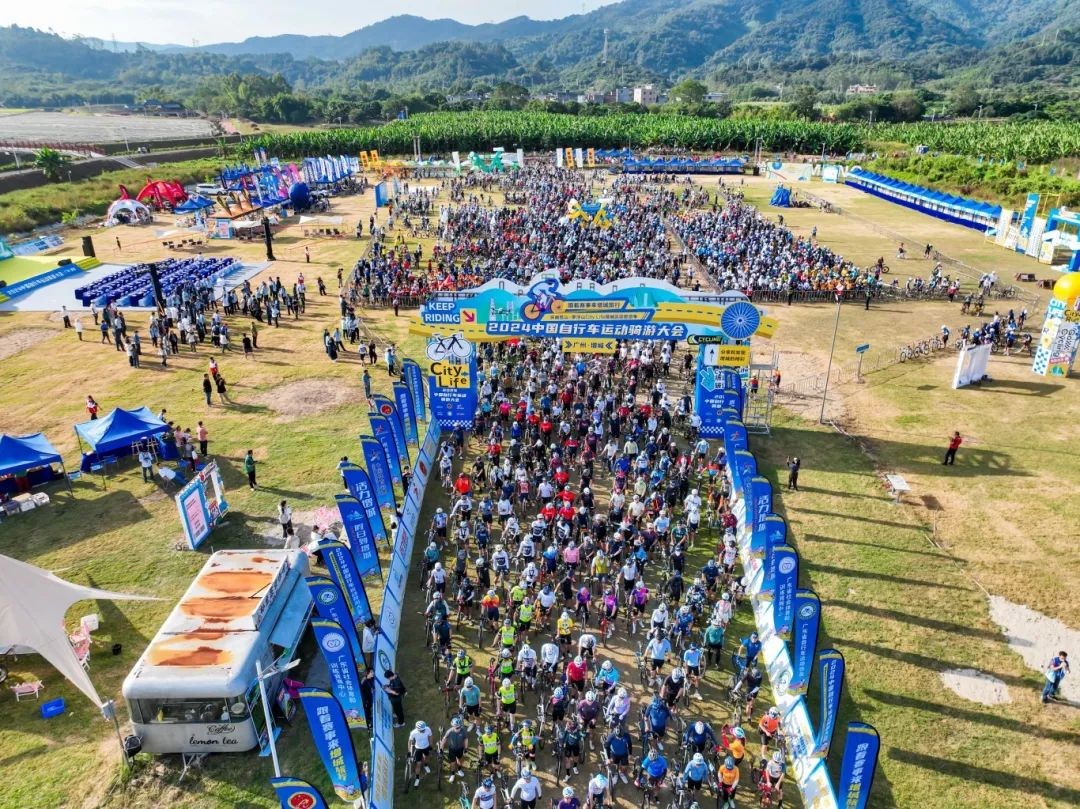 10月27日,2024中国自行车运动骑游大会在广州市增城区举行。本次骑游大会由中国自行车运动协会、广州市体育局和广州市增城区人民政府主办,广州市增城区文化广电旅游体育局承办,广州市增城区“百县千镇万村高质量发展工程”指挥部办公室、广州市增城区派潭镇人民政府、广州市增城区小楼镇人民政府、广州市增城区中新镇人民政府协办,广东省社会体育和训练竞赛中心、广州市体育彩票管理中心、广东省自行车运动协会支持。5000名来自全国各地的自行车骑行爱好者齐聚增城,穿梭在“环两山”的绿水青山之中,感受大自然的诗意馈赠,共享“百千万工程”的丰硕成果。