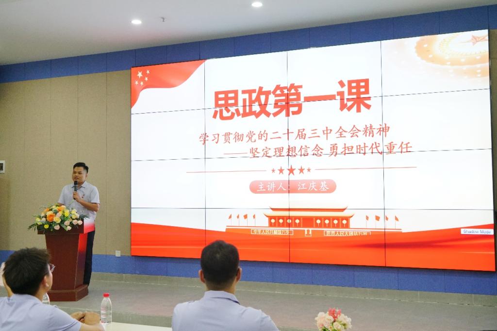 江庆基老师以“坚定理想信念,勇担时代重任”为题,向同学们讲解学习领会党的二十届三中全会精神的重要性,带领同学们回顾我国在经济、文化等方面取得的历史性成就,激发了同学们的自豪感与幸福感,进一步增强了民族自信心和认同感。