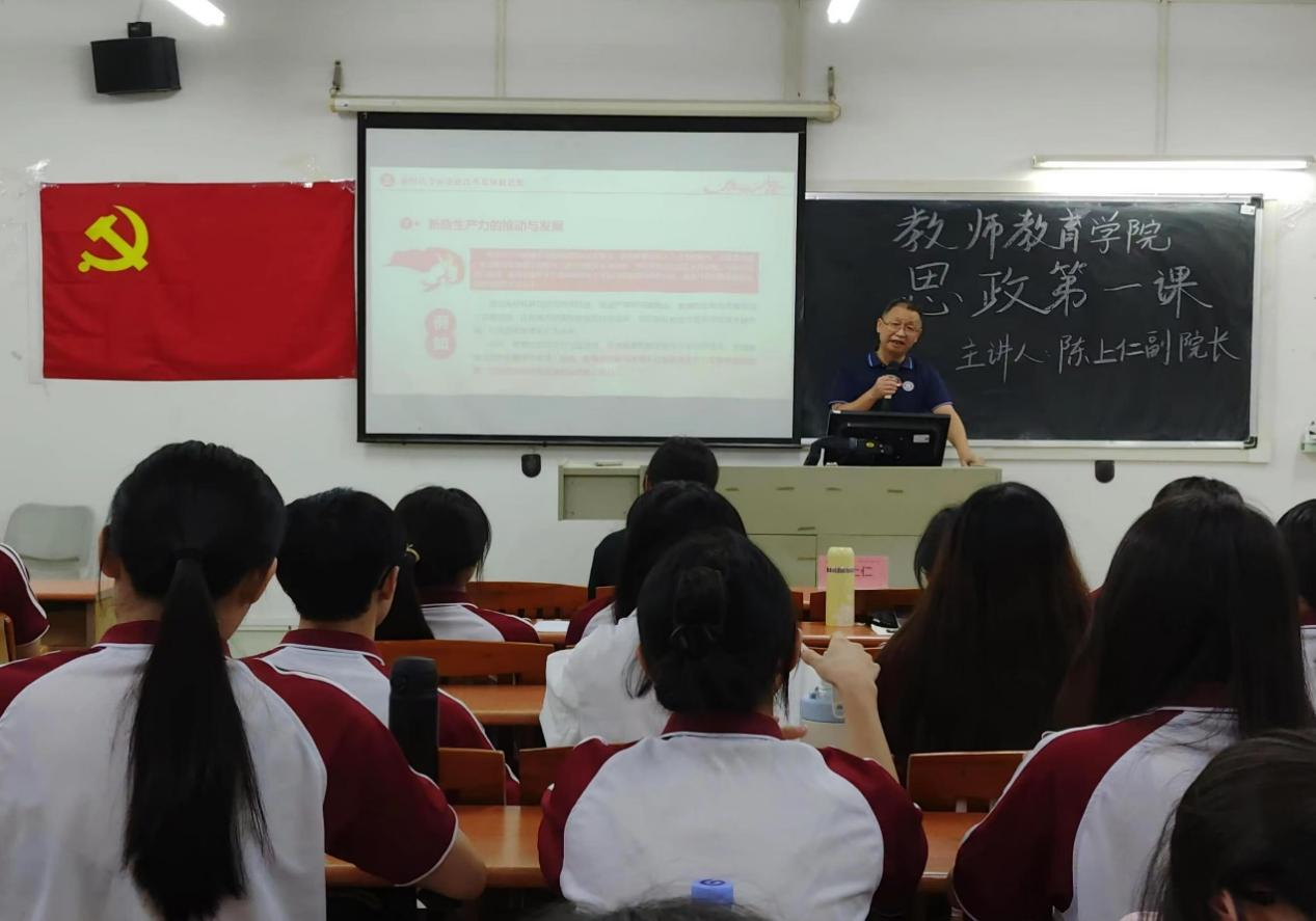 为全面贯彻党的教育方针,深入学习党的二十届三中全会精神,把握时代发展大势,教师教育学院于2024年11月6日下午在广州校区厚德楼C509和肇庆校区8号楼108开展2024年秋季学期“思政第一课”。本次课程旨在引导青年担当时代使命,以青春之力投身新时代,为中国式现代化贡献智慧与力量。本次“思政第一课”由教师教育学院陈上仁副院长、教师教育学院学生工作办公室江庆基副主任主讲。