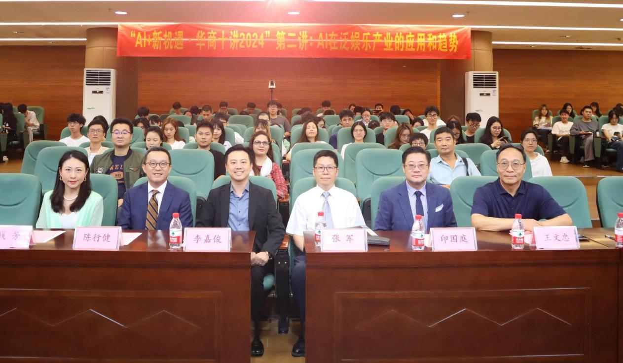 校长助理张军教授介绍出席嘉宾,并对嘉宾的到来表示热烈欢迎。他回顾了第二期华商十讲的启动仪式及第一期华商十讲的盛况。他提到,随着人工智能技术的飞速发展,AI已经渗透到我们生活的方方面面,AI在泛娱乐领域的应用,正日益改变着我们的娱乐方式和生活习惯。我校很荣幸邀请到李嘉俊先生为师生们介绍行业发展的趋势并分享他的宝贵经验。