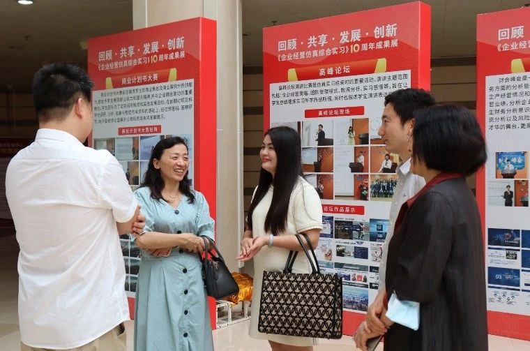 从财会峰会到高峰论坛,从师生成果到讲座交流等,本次成果展充分展示企业家讲堂、CI设计大赛、商业策划书大赛、营销创意大赛、学生团队构建招聘海报等品牌活动和作品。师生互动、生生互动的实习场景、回访交流画面以及师生的认可,详细记录着《企业经营仿真综合实习》的发展足迹,既体现了我校在实践教学方面的不断探索发展,也将为未来的课程建设奠定更加坚实的基础。