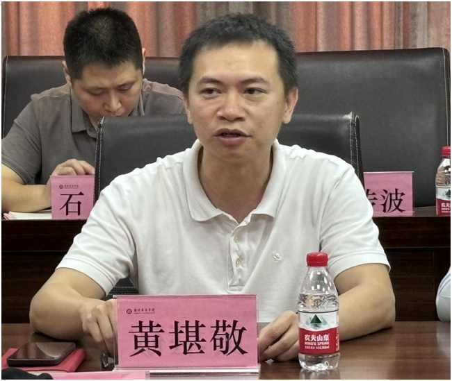 交流会上,新道科技股份有限公司广东分公司总经理黄堪敬先生向与会者介绍了公司的发展历程、业务范围以及在教育数智化领域的最新成果。黄先生的介绍不仅展示了新道科技在行业内的领先地位,也表达了公司对未来教育创新的坚定信心和积极态度。