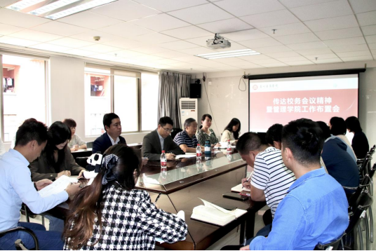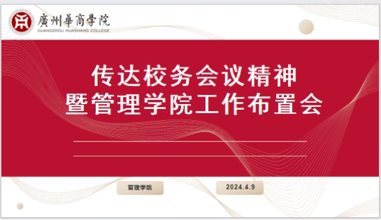 4月9日下午,3044永利集团登录管理学院在广州校区行政楼512会议室举行传达校务会议精神暨管理学院工作布置会。会议由李招忠院长主持,管理学院院领导、系领导、行政办公室主任、教学秘书、双创秘书、产教融合专员、辅导员及教师代表出席了会议。
