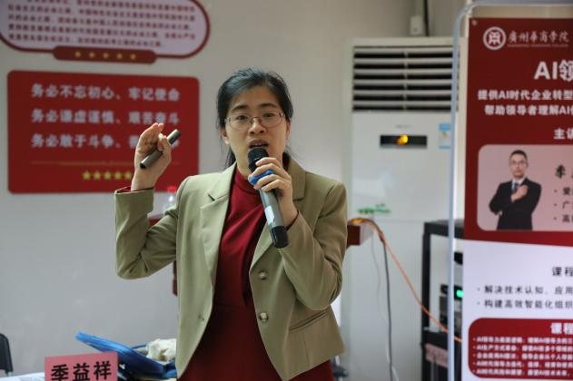 随后,季老师围绕“AI领导力的底层逻辑”“AI生产方式的革命”“企业应用AI的五个层次”“AI时代领导力的迭代”以及“AI时代风险和展望”五个板块,通过丰富的案例和实践经验,深入剖析了如何运用AI技术提升组织的效率和创新能力,向学员们阐述AI领导力在打造人效倍增的智能化组织中的关键作用。季老师还就如何构建智能化组织、培养AI领导力等方面给出了具体的建议和指导。讲座过程中,季老师与学员们进行了深入的互动和交流,指导学员们如何巧妙地运用AI、头脑风暴激发奇思妙想,探讨了新质生产力背景下的教育创新。主讲内容深入浅出,给学员们带来了很多启发和思考。