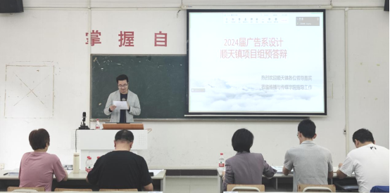 在评审会上,参与预答辩的同学态度认真,精神饱满,着装整齐,流利而清晰地阐述了各自方案的设计思路、创新点、物料展示、活动规划等。顺天镇领导和各位老师对同学们精神状态与务实作风予以了充分肯定,并对各自方案中所存在的问题有针对性地提出了修改意见。