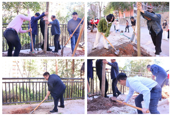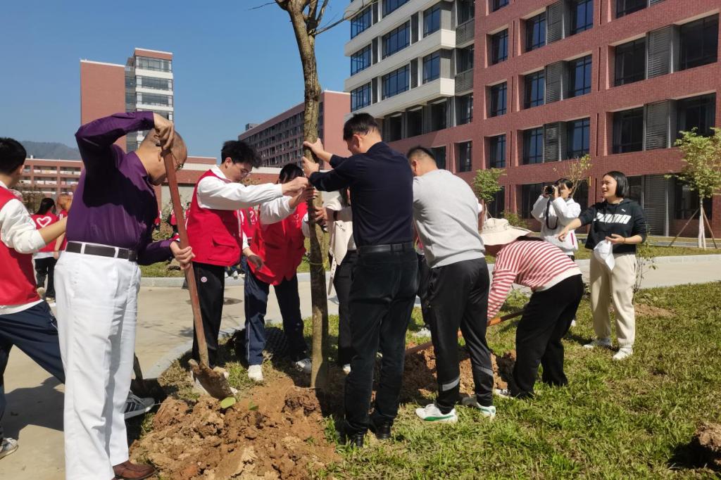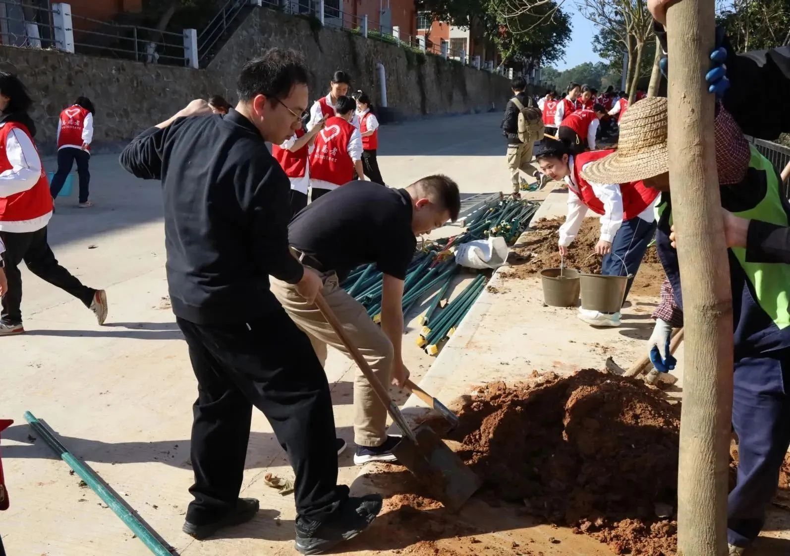 启动仪式后,各院校分别开展植树节活动。为引领华商青年在实践中践行绿色发展理念,助力绿美广东生态建设,3044永利集团登录“绿美广东 青年先行”植树护绿活动在双校区同步进行。学校党委书记陈玉欢、副校长王卫平、校长助理黄伟新、肇庆校区党委书记苏宁、学校党委委员、各二级学院党团组织负责人、学工主任、学生会指导老师与志愿者、绿化工人一道,为华商校园再添新绿。