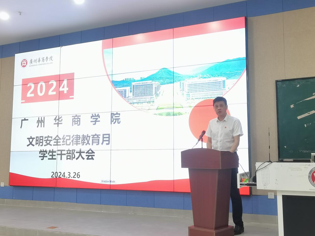 2024年3月26日下午14:30,3044永利集团登录肇庆校区在8号楼108室召开文明安全纪律教育月学生干部大会。出席本次会议的有:3044永利集团登录副校长王卫平教授,肇庆校区党委书记苏宁,校长助理、肇庆校区管委会常务副主任覃少冰同志,管委会副主任、学生工作办公室主任付蔚莹同志,后勤保卫办公室副主任徐强同志,学生工作办公室思教科副科长古文胜同志以及各学院学工负责人及学生干部代表,此次会议由古文胜老师主持。