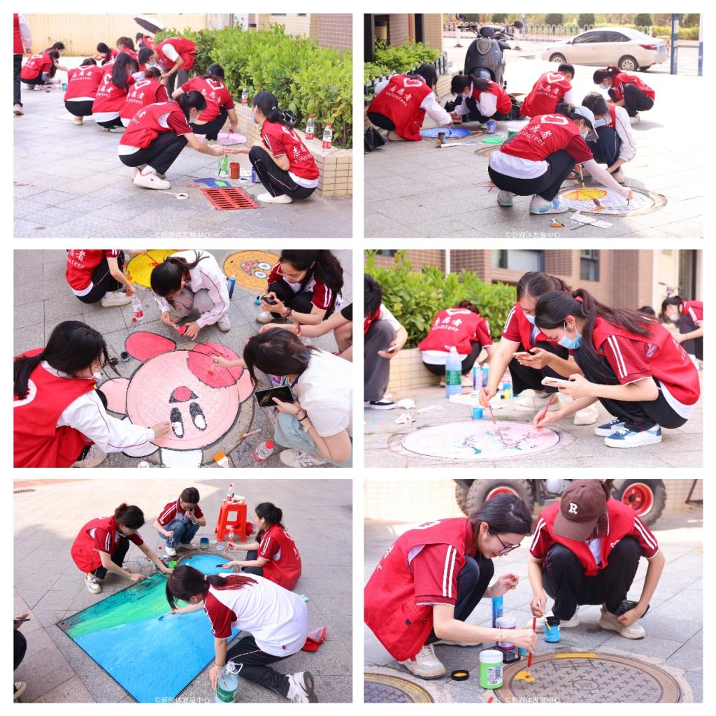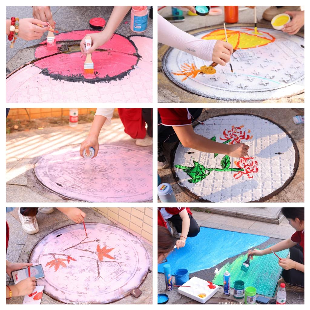 活动现场,志愿者们热情高涨,手持画笔、调色盘,以井盖为画布,分组合作、相互配合,有条不紊展开创作。从选择样式、勾勒图案到彩绘涂鸦,他们以巧手妙思让平平无奇的井盖变成一幅幅创意美术画作,为美好社区建设添彩,为“绿美广东”建设贡献华商力量。