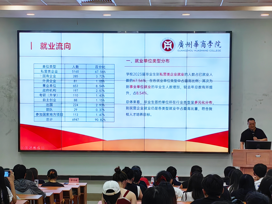 座谈会伊始,学校就业指导中心曾龙威主任围绕学校及各二级学院2023届毕业生的“毕业去向落实率,就业流向,就业层次,就业质量”等方面逐一进行了详细的介绍和分析。他建议,毕业生们要合理设定就业期望,并希望各位毕业生积极主动参加企业宣讲会,从中了解企业相关工作内容和专业类型,认真阅读招聘公告,掌握就业政策要求,为个人就业做好充分准备。