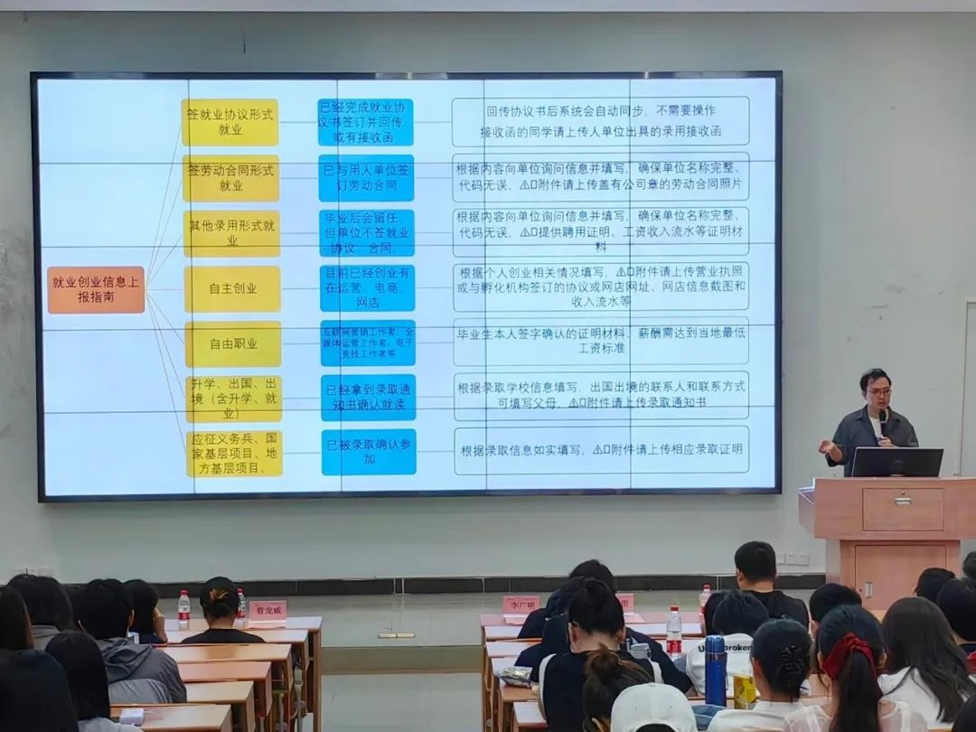 会上,毕业生们就当前就业状况以及就业期望进行交流,积极反馈在就业、择业、毕业论文等方面所面临的问题。通过此次会议,毕业生们对未来毕业和就业相关事宜更加清晰明朗,也有了更进一步的规划。