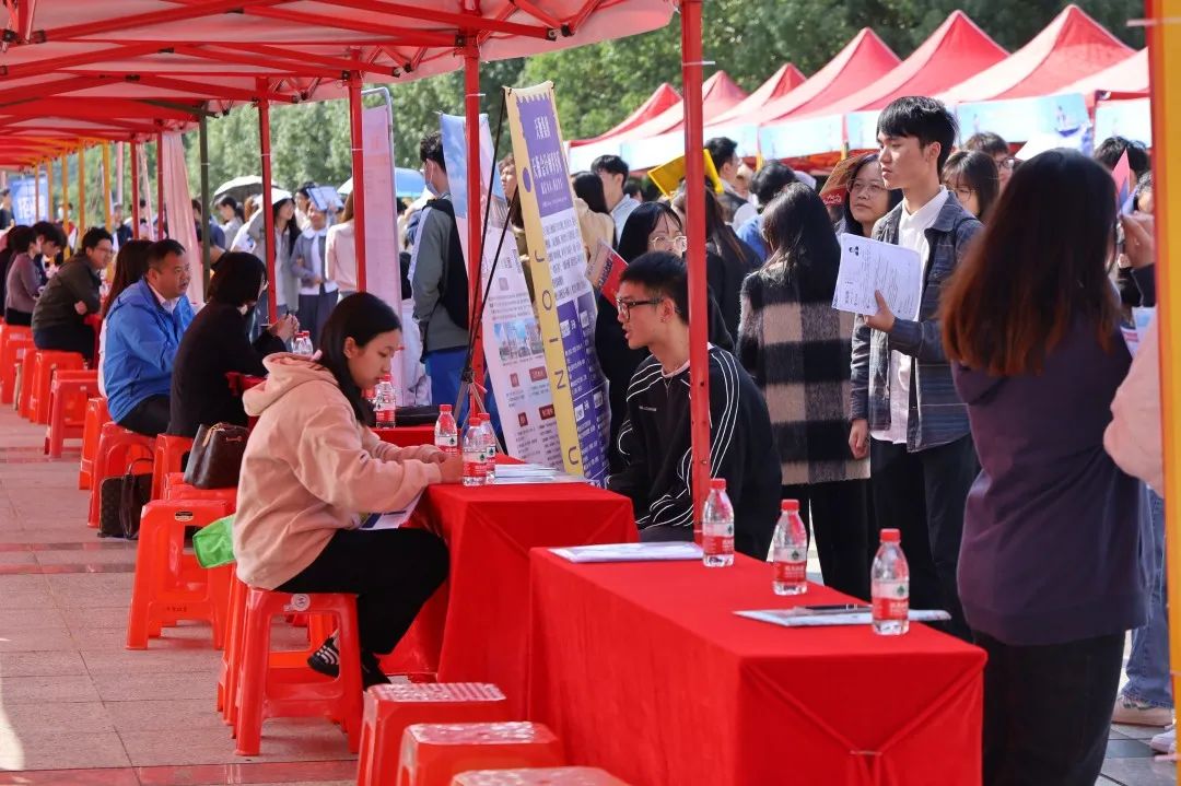招聘会现场人头攒动,企业求贤若渴,摆出宣传展示板,展示企业发展历程、招聘岗位信息以及待遇福利等详细信息;毕业生们穿梭于各展位前寻找心仪岗位,与用人单位就工作内容、应聘方式等进行沟通交流;各个招聘摊位排满长龙,招聘成效明显。