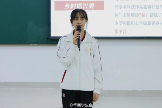 朱子希同学向在场学生骨干介绍了她的任职和获奖经历,为同学们讲述了如何在实践中有所收获。她提出,要带着成长的目的去实践、去体验,要勇于挑战自我,实现突破。还向大家分享了“青衿萤火”实践团制作的视频短片,短片中队员们的努力身影,激发了各位同学的奋斗热情。