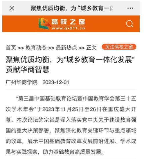 扈中平教授进一步强调,实现优质与均衡的关键在于城乡教育的一体化。广东和江苏在城乡教育发展上各自取得一些显著成果。希望通过本次论坛的交流和分享,总结成功模式,从而为未来的基础教育改革与发展提供宝贵的见解和实践指导。