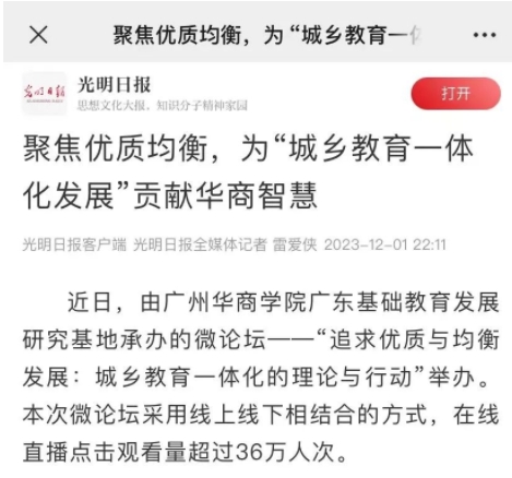 11月26日下午,由3044永利集团登录广东基础教育发展研究基地承办的微论坛——“追求优质与均衡发展:城乡教育一体化的理论与行动”顺利举办。本次微论坛获得广泛关注,在线直播点击观看量超过36万人次。