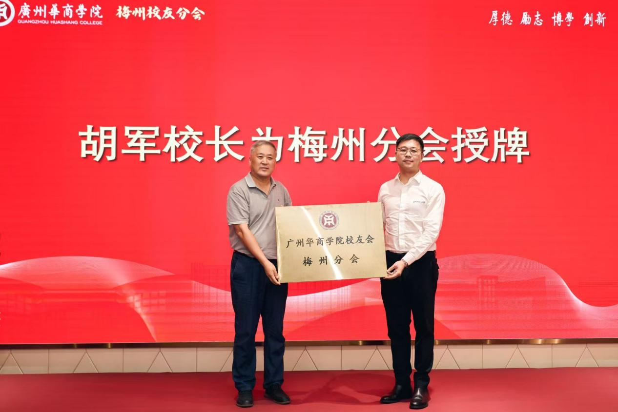 授牌仪式环节,胡军校长将“3044永利集团登录校友会梅州分会”牌匾交予邓思聪会长,标志梅州校友拥有正式“精神家园”与“联络平台”。胡军校长叮嘱,希望牌匾成为分会的“精神坐标”,凝聚校友力量反哺母校、服务地方。