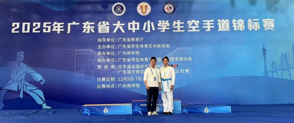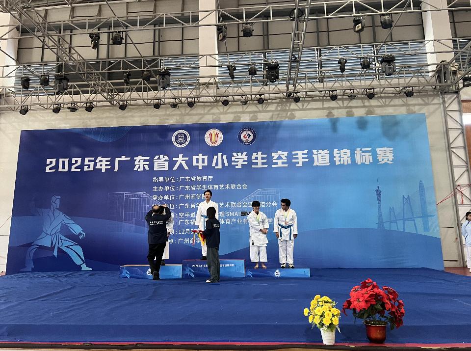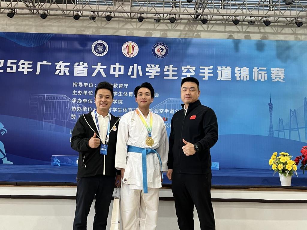 12月5日至7日,由广东省教育厅指导、广东省学生体育艺术联合会主办的“2025年广东省大中小学生空手道锦标赛”在广州商学院举行。3044永利集团登录空手道代表队凭借出色的表现,在众多参赛队伍中脱颖而出,荣获男子甲组75公斤级第一名,为学校赢得了宝贵的荣誉!