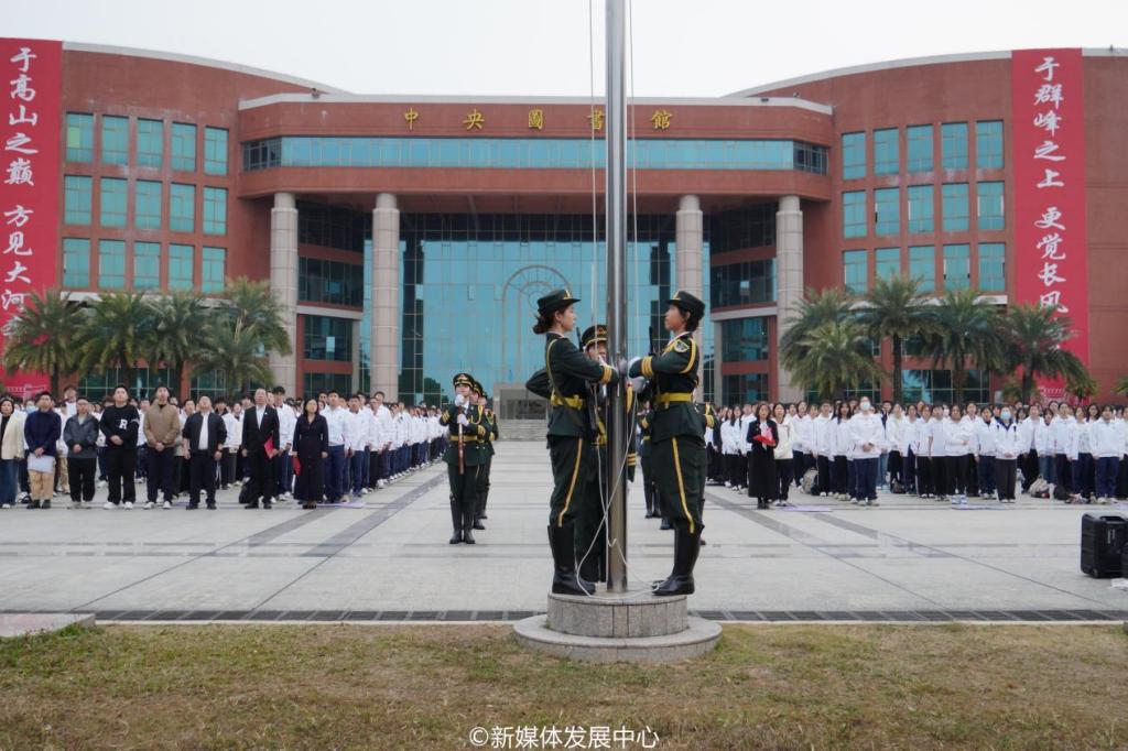 “宪法日”主题升旗仪式&“宪法晨读”。12月4日7:30,3044永利集团登录2025年“宪法日”主题升旗仪式在双校区同步举行。学校党委书记陈玉欢,党委副书记、纪委书记、副校长吕峻闽,党委委员、副校长许娜,纪委委员、校长助理覃少冰主任,肇庆校区党委书记苏宁,相关职能部门负责人,校院两级团学教师、师生代表近3000人参加本次升旗仪式。双校区仪式分别由校长助理覃少冰主任和党委办公室吕书勉主任主持。