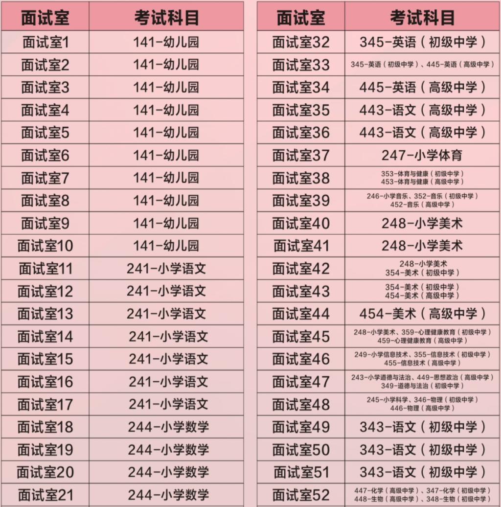 五、面试考场安排