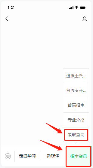 2.进入“3044永利集团登录招生办”公众号,点击菜单栏“招生资讯”,选择“录取查询”