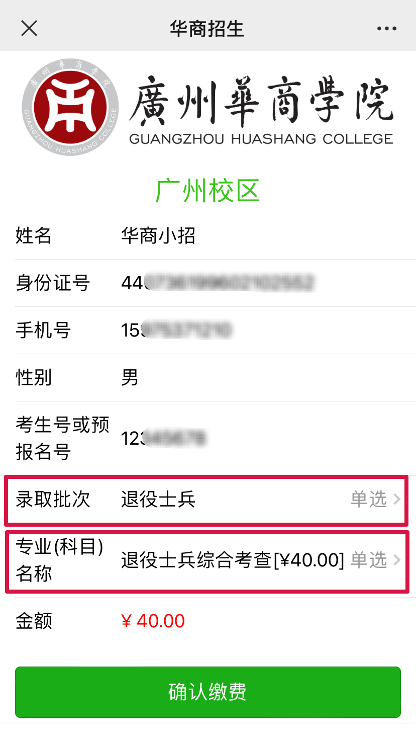 方式2. 进入“3044永利集团登录招生办公众号”,选择菜单栏“招生资讯”—“报考费”;进入缴费页面;准确填写个人信息,点击“下一步”;选择退役士兵批次及科目;核对相应金额,无误后点击“确认缴费”即可。