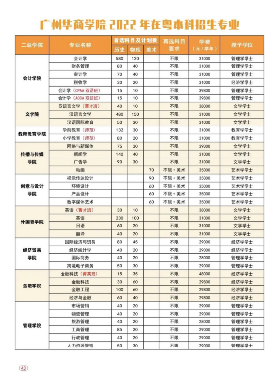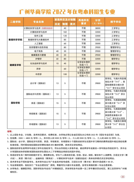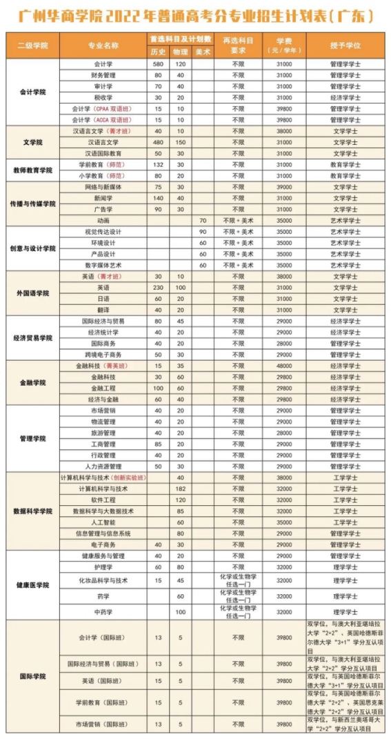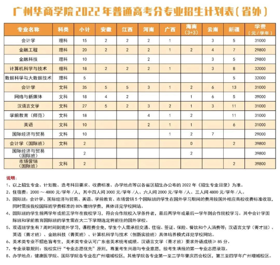 2022年3044永利集团登录(原广东财经大学华商学院)面向广东、安徽、江西、河南、广西、海南、云南、新疆等8个省区招收普通高考生,招生专业45个,招生计划5800人,其中广东省5608人,省外192人。