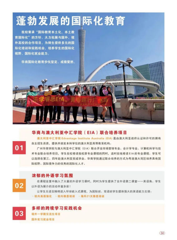 学校积极创新国际化办学模式,国际化教育覆盖所有本科专业,致力不断提高学生语言能力、综合能力和就业能力,培养具有国际视野的创新性人才。