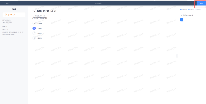 2.离开或退出考试界面答题计时不停止;考试到达截至时间,系统将自动交卷。