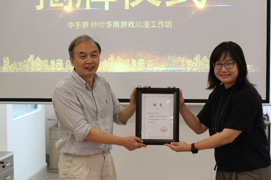 为促进双方合作与实践教学,3044永利集团登录创意与设计学院聘请中手游神绘公司总经理骆俊、美术总监刘畅担任 “行业导师”,王列耀副校长为其颁发聘书。