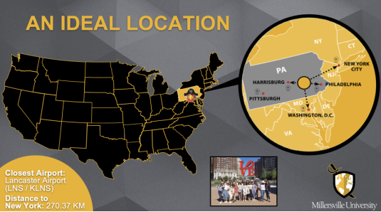 宾夕法尼亚州被称为“基石之州”,是米勒斯维尔大学的所在地。校园距离历史名城兰开斯特 5 公里,兰开斯特是美国最受欢迎的城市之一。从校园出发去去华盛顿特区、巴尔的摩、费城和纽约市乘汽车或火车只需两小时。