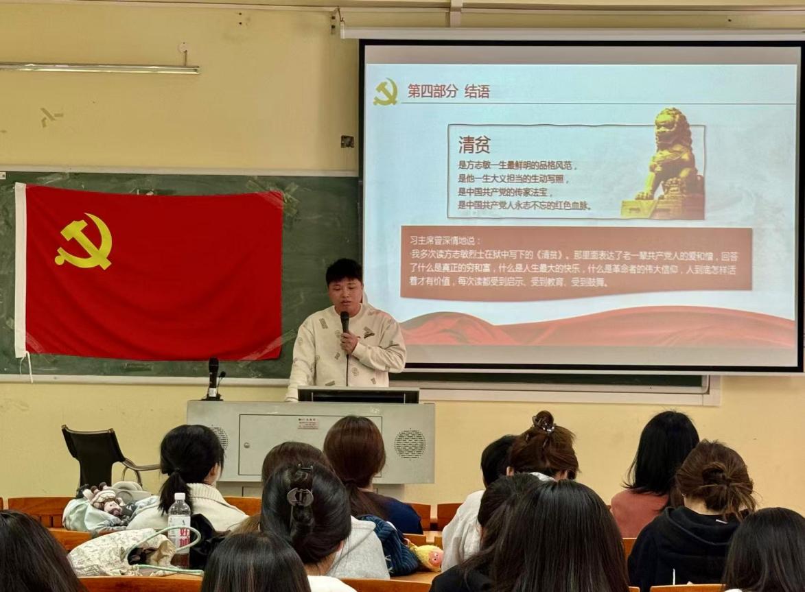 本次主题党课的核心内容是讲述方志敏烈士的光辉事迹与不朽精神。吴老师以翔实的史料,生动再现了方志敏同志的革命人生:他生于1899年,1924年加入中国共产党,是赣东北革命根据地和红十军团的主要创建者。在土地革命战争时期,他领导军民多次粉碎国民党反动派的“围剿”,展现了卓越的军事指挥才能和坚定的革命意志。1935年不幸被捕后,他在狱中极端艰苦的条件下,写下了《可爱的中国》《清贫》等震撼人心的不朽著作,抒发了对祖国深沉的热爱和对共产主义事业的无限忠诚,直至英勇就义。2009年,方志敏被评为“100位为新中国成立作出突出贡献的英雄模范人物”。