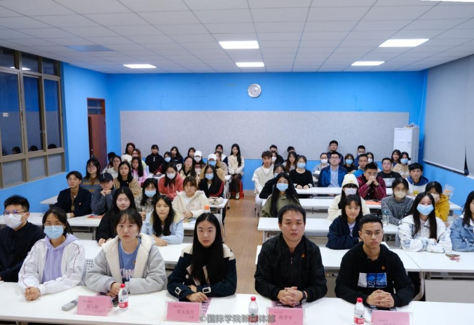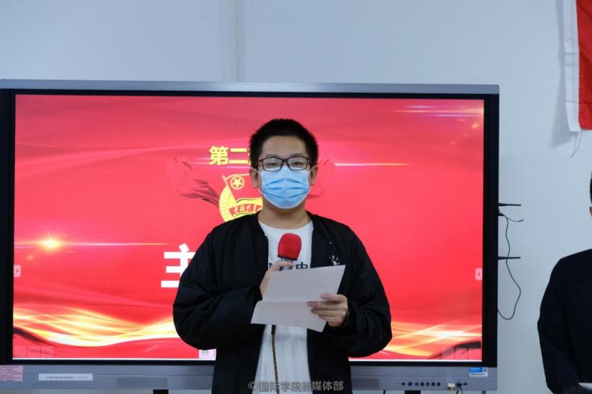 随后,来自20级工商管理双语班的胡柏融同学作为学生代表进行发言,他讲到,青年要挑起国家的负担,与国共进,青年一代正是中国精神和中国力量所在。纵观历史,每一代青年人都担负着不同的使命,在改革开放新时期的中国,许多青年人不负韶华,以青春生命为祖国的繁荣富强而开拓进取。