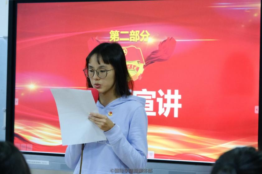 (学生代表张晓迎进行宣讲)