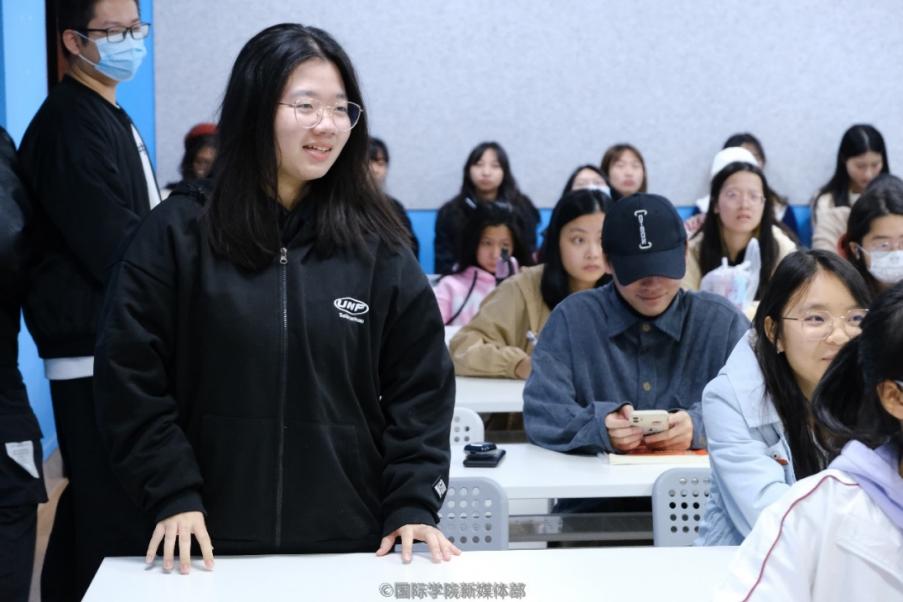 来自20级国际商务双语班的张晓迎同学进行发言,她提到,100年前“五四运动”的爆发培育出了勇敢奋斗的伟大革命者们,100年后的今天,新时代青年要发扬艰苦奋斗的精神,勇做时代的奋进者、开拓者、奉献者。我们作为新青年,更要紧跟时代的步伐,将小我融入大我,实现更高的人生价值。