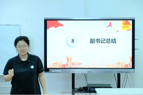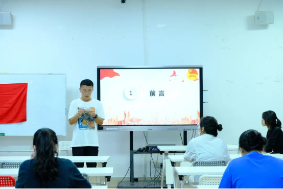 然后,本次团生活动主持人,22本国贸国际班的陈彦熙同学进行总结发言。他认为,在又一个民族伟大复兴的起点,我们青年人应该接过先驱们手中的旗帜继续前进,去追求心中的理想。同时,陈彦熙呼吁同学们作为新时代青年,要肩负历史使命,要树立理想,立志报国;要勤奋学习,勇于实践;要在实践中煅炼品格,磨练意志,在学习文化知识的同时学会做人;既要有理想,又要着眼于现实,从身边事,力所能及的做起。作为新时代青年,我们应该为了国家的繁荣和富强,前赴后继,英勇奋斗,积极进取,勤奋工作。我们是祖国的花朵,祖国的未来,所以我们要好好学习,树立远大理想,立志成才,振兴中华!
