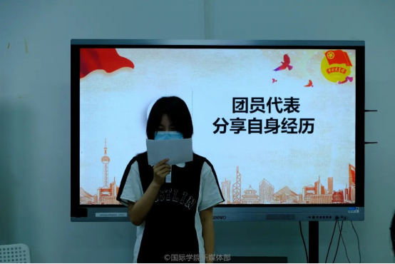 紧接着,来自22本国际经济与贸易(国际班)的宫钰馨进行分享。青春是美好的,但奋斗的青春才是最精彩的。宫钰馨同学指出,我们要力争成为新时代改革创新的排头兵,争做改革事业的拥护者、支持者和参与者。努力学习科学文化知识,培养创新精神和实践能力;同时我们可以积极参与学校或者社会组织的各项基层公益活动,在自身的工作中磨砺担当的肩膀、增长成事的本领。最后,宫钰馨同学希望同学们都能扬起风帆,在波涛汹涌的大海中不断前行,展现我们新一代的青春和力量!