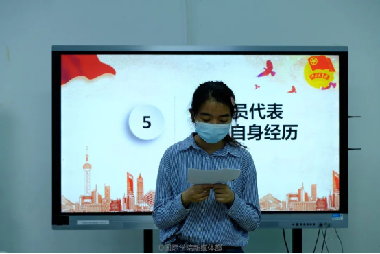 首先,由来自22本会计学(国际班)的颜嘉润同学进行分享。她认为,青年是时代最灵敏的晴雨表。中国新时代的发展进步,如同一堂生动又深刻的“大思政课”,让广大青年更好地读懂中国,把握未来。每一个奇迹的创造,每一个难关的跨越,都在坚定对党的爱戴与忠诚,对中国道路的认可,对民族复兴前景的信心。作为新时代青年,我们要响应党的号召,用耳朵倾听人民呼声,用眼睛发现中国精神,用脚步丈量祖国大地,用内心感应时代脉搏。同时她也表示,希望同学们能够把握好生命中的每一天,做一个有梦的青年,向着金色的彼岸前进!