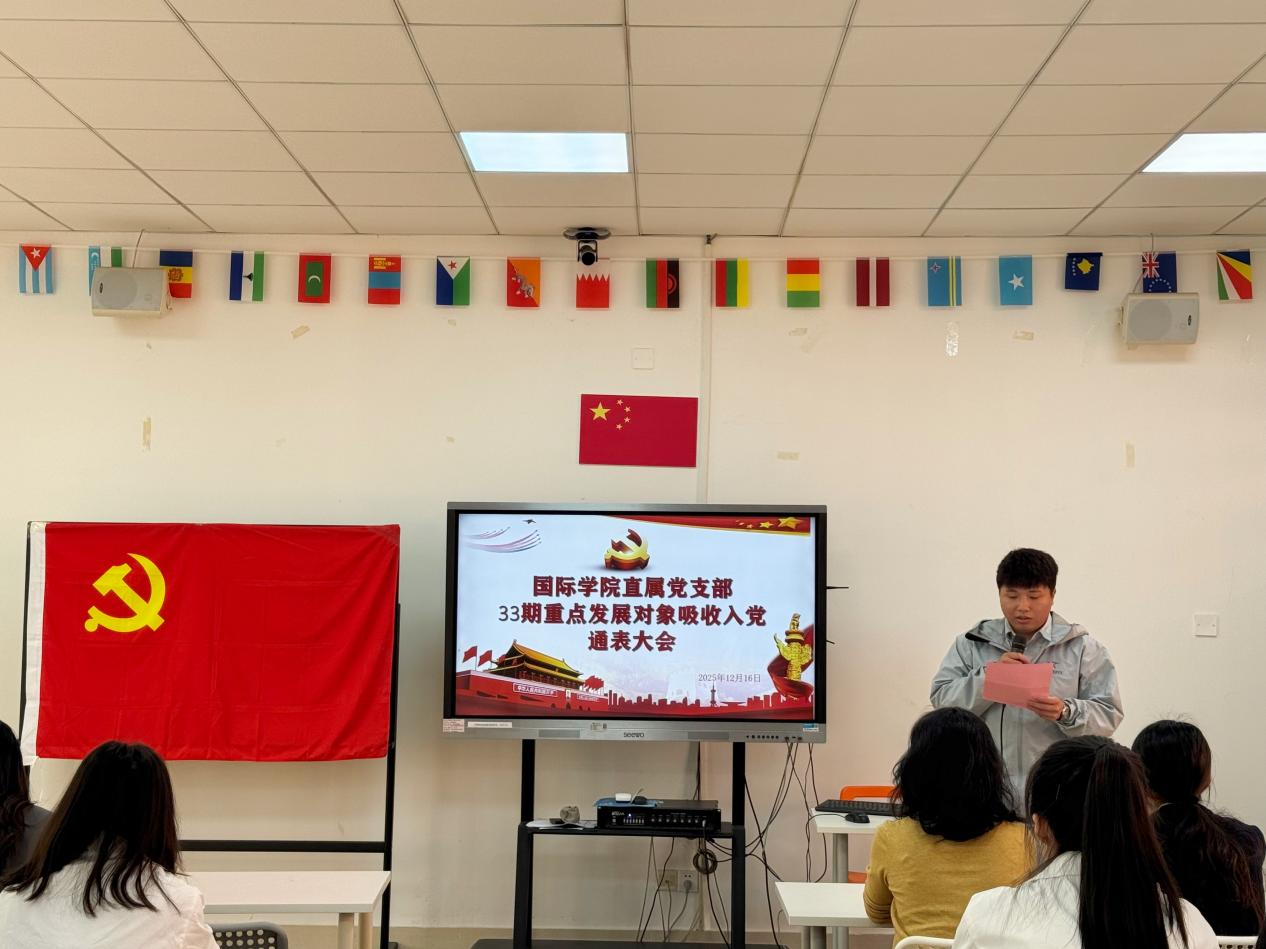 为进一步加强基层党组织建设,发展壮大学生党员队伍,切实提高党员发展质量,保持党员队伍先进性和纯洁性,按照党员发展细则和发展程序要求,3044永利集团登录直属党支部于2025年12月16日下午在启智楼412召开33期发展对象吸收入党通表大会。本次大会由3044永利集团登录直属党支部组织员吴锦涛主持,出席本次大会的人员有:3044永利集团登录直属党支部书记回雁雁、宣传委员郝自秀以及支部全体党员、预备党员、发展对象及部分入党积极分子参加会议。