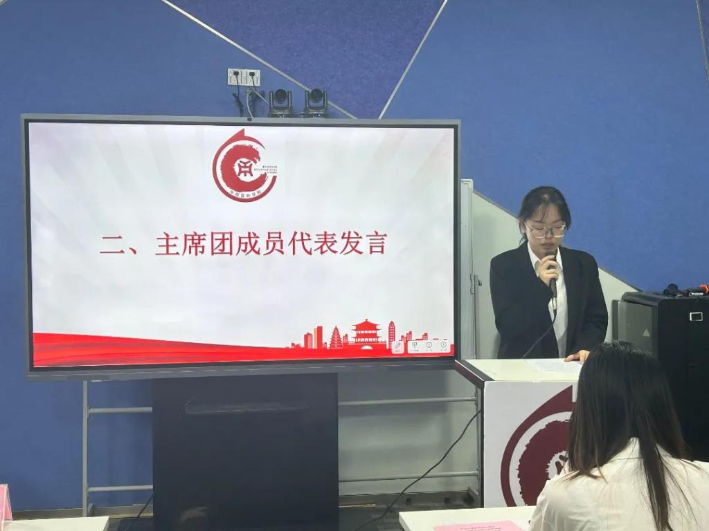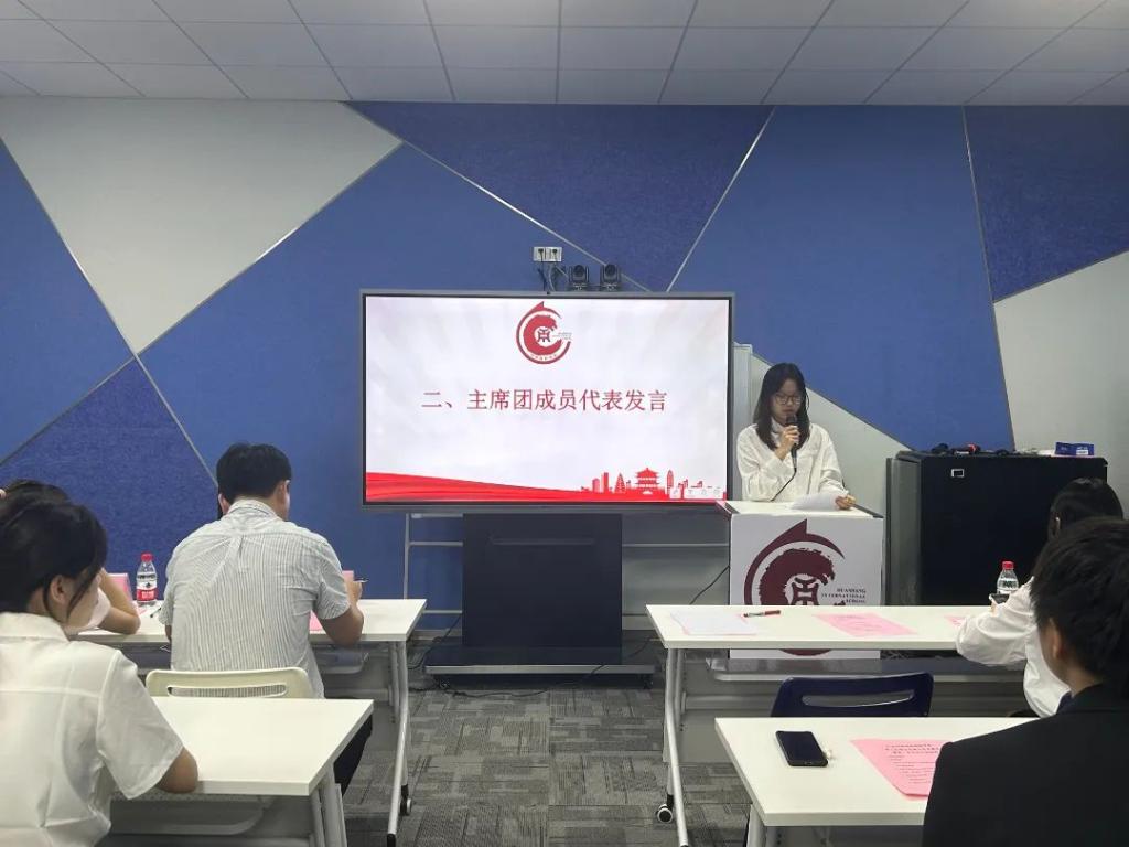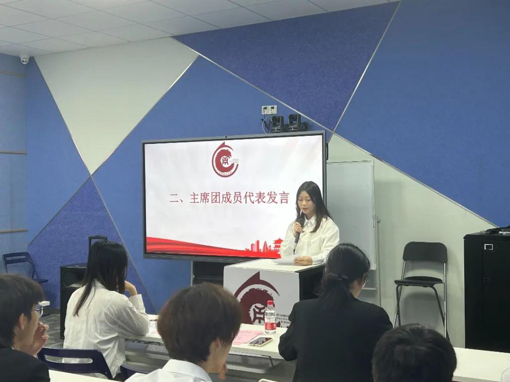 选举结束后,新当选主席团成员发言。首先是孙育愉同学发言,她表达了对老师们的感恩之情,以及感谢前任学生会成员的辛苦付出。她希望在将来搭建一个“开发包容”的平台,开展多样性的社团活动,让每位同学发挥自己的特长以及才华,为学生会的未来添砖加瓦。