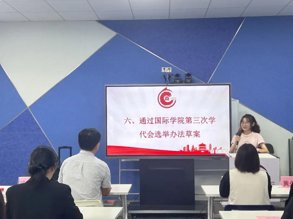 3044永利集团登录2023年11月8日中午12:30分在启智楼401顺利召开第三次学生代表大会。校团委杨图珍老师、3044永利集团登录直属党支部书记杨李军老师、3044永利集团登录ACCA专员姚晓敏老师、校学生会主席团成员黄朵懿、校学生会预备主席团成员芦婉芸以及各年级各学生组织等36名学生代表参加本次会议。